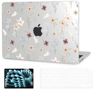 G JGOO Compatible with MacBook Air 13 inch Case 2025 2024 2023 2022 M4 A3240 M3 A3113 M2 A2681, Clear Plastic Hard Shell for MacBook Air 13.6 inch Case + Keyboard Cover + Screen Protector, Florets