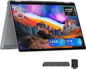 Lenovo Yoga 7 2-in-1 16" 2K WUXGA Touchscreen Laptop, AMD Ryzen 7 8840HS, 16GB RAM, 3TB Storage (2TB SSD+1TB Docking Station Set), Backlit Keyboard, Fingerprint, Windows 11 Home, Gray