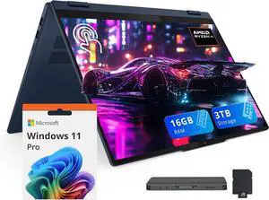 Lenovo Yoga 7 2-in-1 16" 2K WUXGA Touchscreen Laptop, AMD Ryzen 7 8840HS, 16GB RAM, 3TB Storage (2TB SSD+1TB Docking Station Set), Backlit Keyboard, Fingerprint, Windows 11 Pro, Gray