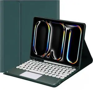 NUWONAYA Touchpad Keyboard Case for Galaxy Tab A11 Plus/A9 Plus 11 Inch with S Pen Holder, Candy Color Round Keys Magnetic Detachable Wireless Trackpad KeyboardTeal