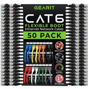 GEARit 50-Pack Cat6 Patch Cable 0.5 Foot / 6 Inches Cat 6 Ethernet Cable Snagless Flexible Soft Tab - Premium Series - Black