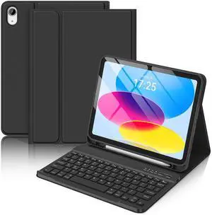 BQSS for iPad (A16) 11th 10th Generation Case with Keyboard, Auto Wake/Sleep, Detachable Wireless Bluetooth Keyboard Case with Pencil Holder for iPad 11-inch A16 2025 10th Gen 10.9 Inch 2022 (Black)