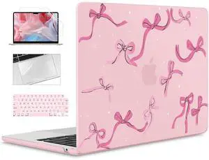 ICEKEE Compatible with MacBook Air 15 inch M5 2026 2025-2023 Release M4 M3 M2 A3448 A3241 A3114 A2941, Plastic Hard Shell Case & Keyboard Cover & Screen Protector, Chalk Pink Bow
