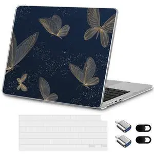 Loyrina for New MacBook Air 15 inch Case 2026 M5 2025 M4 2024 M3 Chip Aesthetic Lightweight Floral Design Clear Laptop Shell 6-in-1 Bundle with TPU Keyboard Cover & OTG Adapters, Gold Butterflies