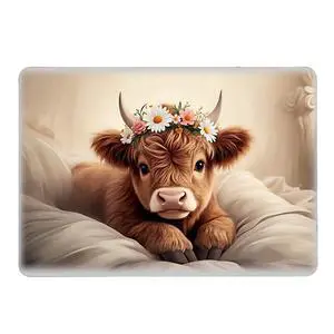 WANKBLC Compatible with MacBook Air 15 Inch 2023/2025 Version of M2 A2941/M4 A3241 Plastic Black Computer Case for Girl Boy Fashion Pattern Cute Brown Highland Cow Sleeping