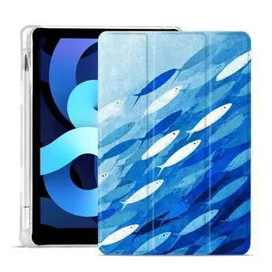 MAYCARI Marine Ocean Sea Case for iPad A16 11 inch 2025 with Pencil Holder, Original Pattern iPad 10th Generation Soft TPU Back Protective Cover Shell, Auto Sleep/Wake Slim Shell - Ocean Fish School