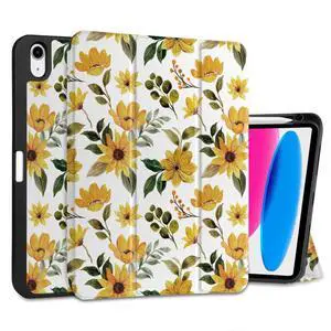 TWOLSKOO for iPad 10th Generation Case 10.9 inch 2022, [Built-in Pencil Holder, Support Auto Sleep/Wake] Trifold Stand Protective Rubberized Back Cover, Sunflowers