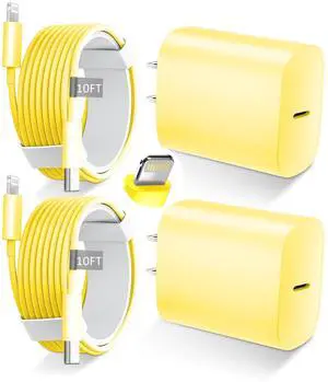 Phone 14 13 12 11 Fast Charger,10FT Long Phone Chargers Fast Charging Lightning Cable with 20W USB C Charger Block for Phone 14/14 Pro Max/13/13 Pro Max/12/12 Pro Max/11/11Pro/XS/Max/XR/X,Pad,Yellow