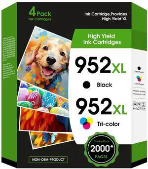 952xl Ink Cartridges Black Color Combo 4-Pack Compatible for HP 952 XL Work with Officejet Pro 8710 7740 Printers 8720 8702 8210 7720 8715 8730 8740 8216 8725 8700 8200 7730 8743 Cyan Magenta Yellow
