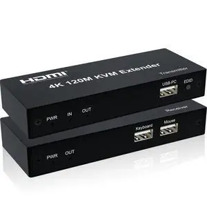 4k 30Hz 120M HDMI KVM Extender, HDMI Extender with USB KVM Control RJ45 120m Over Over Cat5e/Cat6 POC with Loop Support USB Keyboard Mouse for PC Computer
