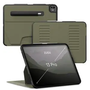 Zugu Case for iPad Pro 13 (M4/M5) 2024/2025, Slim Protective Cover with Apple Pencil Holder, Auto Wake/Sleep, Multiple Viewing Angles, iPad Pro 13 Inch Cover, Phone Protectors, Olive Green