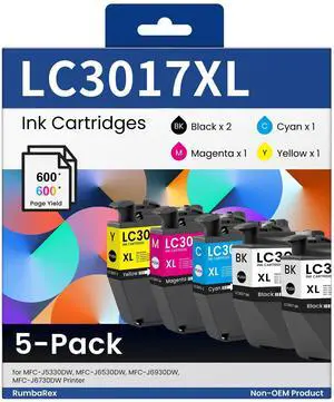 LC-3017 LC3017 XL Ink Cartridges Set 5-Pack High-Yield LC3017BK LC3017C LC3017M LC3017Y Replacement for Brother LC3017 Ink Cartridge for MFC-J5330DW MFC-J6530DW MFC-J6930DW MFC-J6730DW Printer Ink