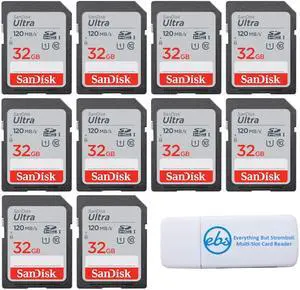 Sandisk 32GB Ultra SDHC UHS-I Memory Card for High-Speed Photography and Full HD Video - Reliable Storage Solution - Waterproof, Shockproof, and X-ray Proof Bundle with USB Card Reader(10-Pack)