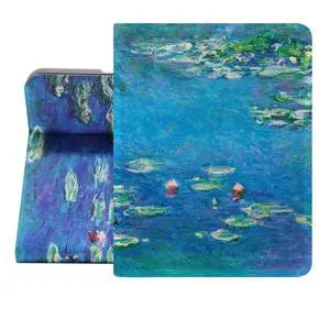 Berkin Arts Compatible with iPad mini 4th/5th Generation Case (7.9 Inch) Case 2019 2018 2017 2016 2015 Folio Case Premium Leather Cover Cloisonnism Teal Blue Flower Floral (Waterlilies by Monet)