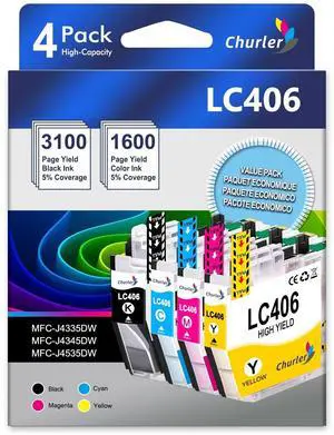 LC406XL Ink Cartridges Compatible for Brother LC406XL LC406 High Yield Work with Brother MFC-J4535DW MFC-J4335DW MFC-J5855DW MFC-J6555DW MFC-J6955DW Printer(Black, Cyan, Magenta, Yellow, 4Pack)