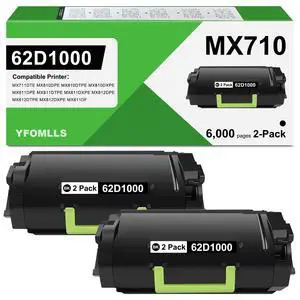 Replacement 62D1000 Toner Cartridge Compatible for Lexmark 62D1H00 621H 62D1000 621 Toner for MX711DE MX710 MX710DE MX710DHE MX810 MX810DE MX811 MX811DE MX812 MX812DE Laser Printers, 2 Pack