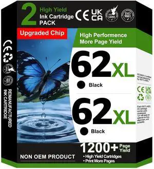 62XL Ink Cartridges Replacement for HP Ink 62 62XL HP62 Black Color Cartridge Combo Pack Work for HP Envy 5540 5545 5549 5640 5642 5660 5664 5665 7640 7645 8000 200 250 5740 5742 5745 8040 Printer