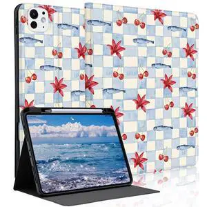 Idocolors Cute Cherry Fish Case for 10.9" iPad A16 2025/2022(10th/11th Gen) with Pencil Holder, Auto Wake/Sleep Leather Soft TPU Back Cover for Women Girls