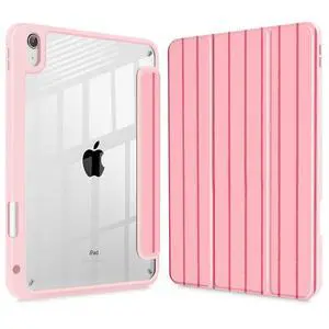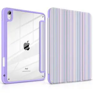 TWOLSKOO for iPad 11th & 10th Gen Case with Pencil Holder, Trifold Stand, Auto Sleep/Wake, Clear Acrylic Back with TPU Bumper, for iPad 11-inch (2025, A16 Chip) & 10.9-inch (2022), Purple Stripes