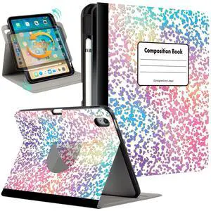 Lokigo Rotating Case for iPad (A16) 11th/10th Generation 11-Inch/10.9 Inch (2025/2022), Buils with Pencil Holder, Support Touch ID, 360 Degree Rotation Smart Stand Cover, Pink CompositionBook