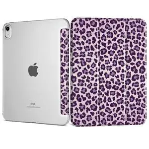 DONGKE for iPad 11th Generation Case 11 Inch 2025 (A16 Chip) & iPad 10th Generation 10.9 Inch 2022, Slim Foldable Stand Hard PC Translucent Back Shell Smart Cover - [Auto Wake/Sleep] - Purple Leopard