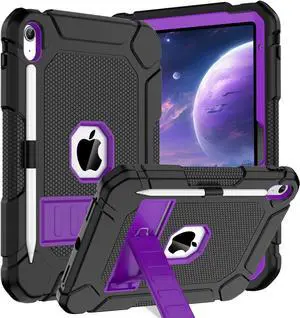 BMOUO Case for iPad (A16) 11th Generation 11 Inch 2025/iPad 10th Generation 10.9" 2022 - with Kickstand & Pencil Holder, Heavy Duty Shockproof Protective iPad 11th 10th Generation Case, Black Puple