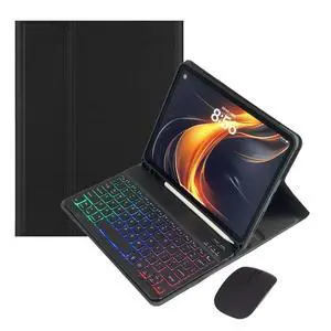 for iPad 11th(A16)/iPad 10th Generation Case with Keyboard and Mouse, 7 Colors Rainbow Backlit Magnetic Detachable Keyboard Cover with Pencil Holder,Black