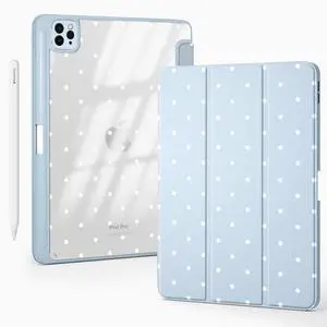 BlHMCASE Cute White Polka Dot for iPad (A16) 11th Gen Case 11 Inch 2025, for iPad 10th Gen Case 10.9 Inch 2022 with Pencil Holder, Auto Sleep/Wake, Blue Leather Clear Acrylic Back Cover