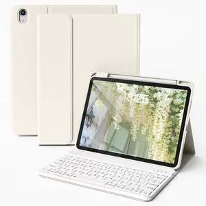 kenke Keyboard Case for iPad 11 Inch A16 2025/10th Generation 10.9 Inch 2022, Slim Folio Keyboard Cover with Pencil Holder, Magnetic Detachable Wireless Keyboard, Auto Wake/Sleep, Cream White