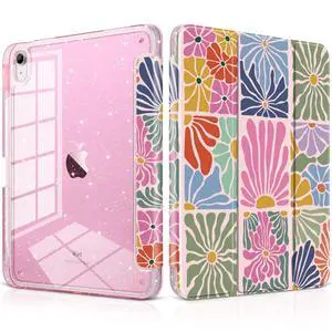 DONGKE for iPad 11th Generation Case (A16, 11-inch 2025) / iPad 10th Generation (10.9-inch 2022), Glitter Clear Acrylic Back, Pencil Holder, Trifold Stand, Auto Sleep/Wake - Colorful Florals