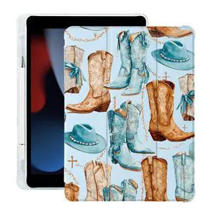 BlHMCASE Western Cowboy Boots Hat for iPad (A16) 11th Generation Case 11 Inch 2025, for iPad 10th Gen Case 10.9 Inch 2022 with Pencil Holder, Auto Sleep/Wake, Blue Leather Soft TPU Back Cover