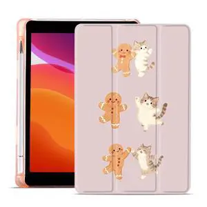 MAYCARI Christmas Case for iPad A16 11 inch 2025 with Pencil Holder, Original Xmas Cat Kitty Gingerbread Man Soft TPU Back Protective Cover Shell for iPad 10th Generation Auto Sleep/Wake Slim Shell