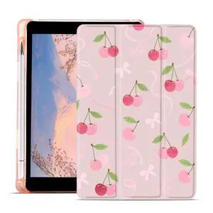 AdorableWhimsy Cute Girly Case for iPad (A16) 11th Generation 2025 11" /iPad 10th Generation 2022 10.9" Pink Cherry Aesthetic Design Leather Protective Case Foldable Soft Back Cover with Pencil Holder
