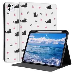 Idocolors Cute Black Cat Case for 10.9" iPad A16 2025/2022(10th/11th Gen) with Pencil Holder, Auto Wake/Sleep Leather Soft TPU Back Cover for Women Girls