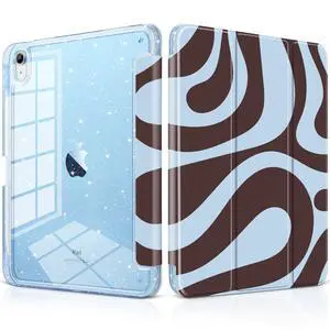 DONGKE for iPad 11th Generation Case (A16, 11-inch 2025) / iPad 10th Generation (10.9-inch 2022), Glitter Clear Acrylic Back, Pencil Holder, Trifold Stand, Auto Sleep/Wake - Groovy Swirl