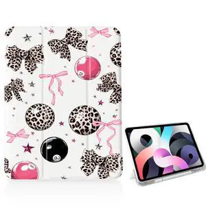 OFQKOAKS Billiards Leopard Bow Case for iPad 11 Inch (A16) 11th 2025/iPad 10.9 Inch 10th Gen 2022,[Pencil Holder+Auto Sleep/Wake],Slim Trifold Stand Protective Cover with Soft TPU Back,White