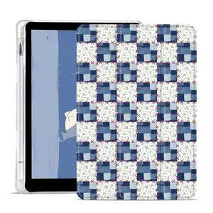 AdorableWhimsy Blue Patchwork Printed Case for iPad (A16) 11th Generation 2025 11" /iPad 10th Generation 2022 10.9" Cute Girly Protective Cover Trifold Stand Blue Leather Soft Back with Pencil Holder