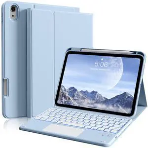 BQDIYOO Keyboard for iPad 11th Gen, 11/10.9inch iPad Case with Pencil Holder, Multi-Touch Trackpad 7 Color Backlit, 11inch A16/10.9" case with Wireless Keyboard Folio Cover Auto Wake/Sleep, Blue