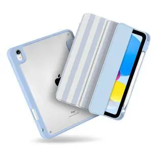 MecBevia Case for iPad 11 inch A16 (2025 11th Generation) / iPad 10.9 inch (2022 10th Gen) A3354, A3355, A3356, A2696, A2757, A2777 Built-in Pencil Holder & Auto Wake/Sleep, Blue Stripes