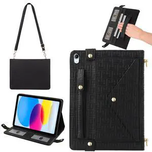Handbag Case for iPad 11th Gen A16 2025/10th Gen 2022 10.9-inch, Techcircle Elegant Crossbody Folio Stand Wallet Case with Pencil Holder, Card Slots, Hand Strap, Shoulder Strap, Black