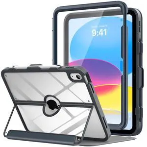 MoKo for iPad 11-inch (A16) 11th Generation Case 2025/ iPad 10th Generation Case with Pencil Holder 2022 10.9 inch, Built-in Screen Protector Clear Back, Multi Angle Viewing Stand, Space Gray