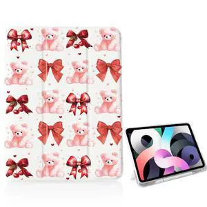 Girly Cute Pink Bear Bow for iPad A16 11th 11 Inch 2025/iPad 10th Gen 10.9 Inch 2022 Case,[Pencil Holder+Auto Sleep/Wake],Slim Stand Soft Leather TPU Back Smart Cover,White