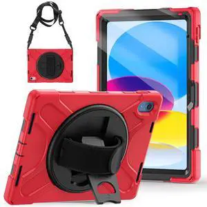 YOUSIDUN Kids Case for iPad 10th/11th Gen (10.9/11 Inch 2022/2025 A16) Shockproof 360 Full-Body Protection Cover with Screen Protector, Stand & Pencil Holder Boys Anti-Drop Design-Black Red