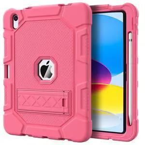 Azzsy Case for iPad (A16) 11th Generation 11 Inch 2025 / iPad 10th Generation 10.9 Inch 2022, [Built-in Pencil Holder] Heavy Duty Shockproof Rugged Protective Case, Pink