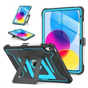Soke Case for iPad (A16) 11th/10th Generation (11-Inch 2025/10.9-Inch 2022), with Screen Protector and Kickstands, Rugged Full Body Heavy Duty Shockproof Protective Cover - Black CyanBlue