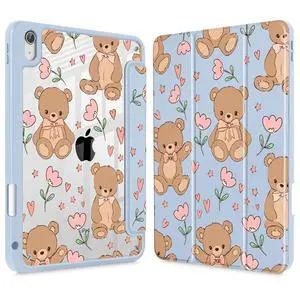 May Chen for iPad (A16) 11th Generation Case 11 Inch 2025, iPad 10th Gen Case 2022 10.9 inch, Built-in Pencil Holder with Shockproof Cover Clear Back Shell Auto Wake/Sleep, Cute Teddy Bear