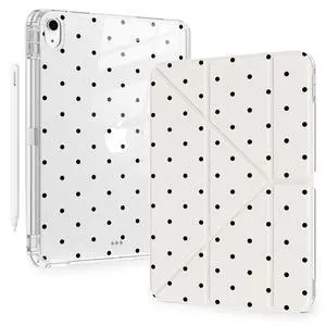 MEEgoodo Case for iPad A16 11th Generation 11 inch 2025/10th Gen 10.9 inch 2022, Cover with Transparent Acrylic Back Shell,Tablet Case with Pencil Holder+Auto Wake/Sleep+ Stand, Poka Dot Black