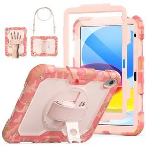 SCSVPN Kids Case for iPad (A16) 11th/10th Generation 11/10.9 inch 2025/2022, Shockproof Rugged Cute Rainbow Cover for iPad 11/10 with Pencil Holder, 360 Rotating Stand, Hand/Shoulder Strap, Camo Pink