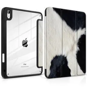 TWOLSKOO for iPad 11th & 10th Gen Case with Pencil Holder, Trifold Stand, Auto Sleep/Wake, Clear Acrylic Back with TPU Bumper, for iPad 11-inch (2025, A16 Chip) & 10.9-inch (2022), Cow Print