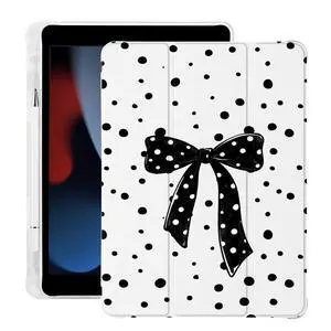 BlHMCASE Cute Black Bow Polka Dot for iPad (A16) 11th Generation Case 11 Inch 2025, for iPad 10th Generation Case 10.9 Inch 2022 with Pencil Holder, Auto Sleep/Wake, White Leather Soft TPU Back Cover